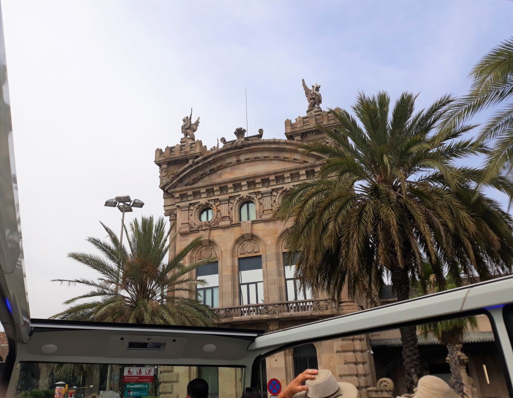 - Une visite de Barcelone en bus, sur des sièges au rez de chaussé du bus… Ou sur les sièges se trouvant à l’étage du bus, cet étage étant totalement ouvert, à l’air libre (les cheveux au vent !), ce qui est très agréable !
