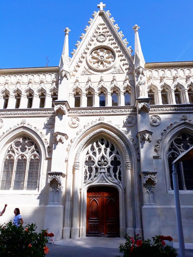L’architecture de l’abbaye, postée au bord du lac du Bourget, en Savoie, est très belle. Nous avons pu effectuer la visite de l’intérieur, mais comme il était interdit de prendre des photos, je ne peux que vous montrer l’extérieur.