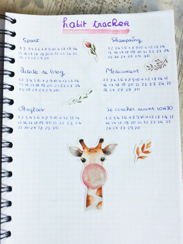 oooh trop mignon!! Moi j’ai un bullet journal très simplifié avec simplement: vue annuelle, au début de mois le récapitulatif des événements à venir et mon sport tracker et quelques autres petites choses comme les anniversaires :).
