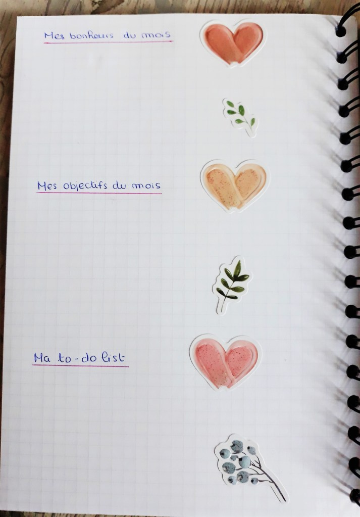 - Mes bonheurs du mois, mes objectifs du mois et ma to-do List