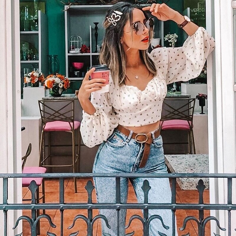 Ce haut est très mignon. Ça fait un moment que je souhaite acheter un top dans ce style : je vais peut-être me lancer… Ce que j’aime bien en ce qui concerne ce top ce sont les imprimés cœur, la matière, ainsi que la forme et le décolleté dans le dos. Je pense qu’on peut le porter facilement avec un joli jean, pour un style casual et très printanier.