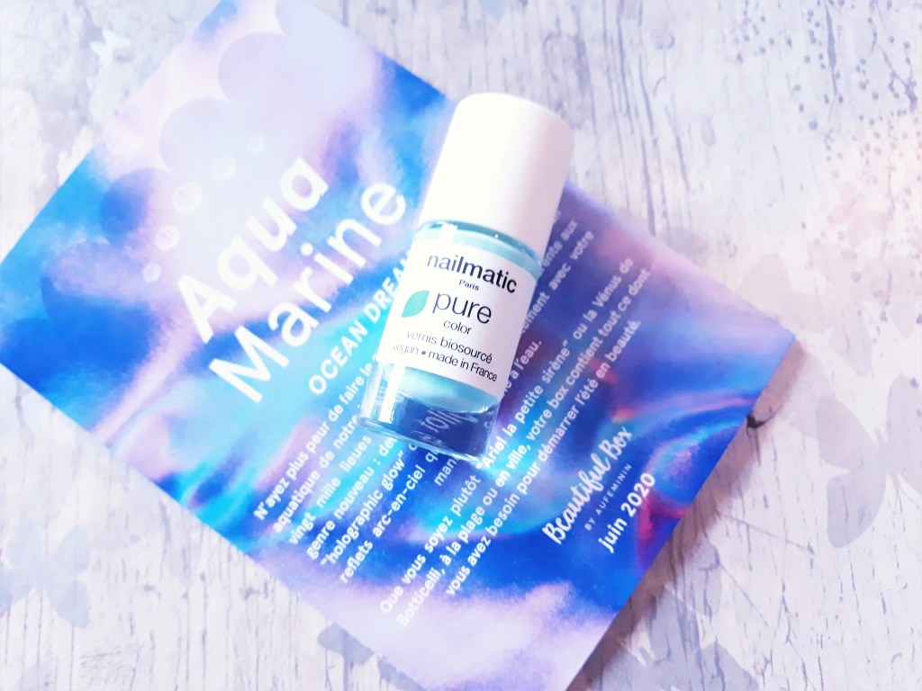 Ça fait penser à la plage, j’aime beaucoup cette box. Les couleurs sont magnifiques. J’aime le bleu dans toutes ses nuances. L’eponge me tente bien 😍