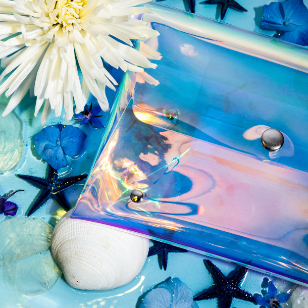 « Plutôt “Ariel la petite sirène” ou Vénus de Botticelli ? Retenez votre souffle, on vous emmène à la découverte du monde aquatique entre pierres précieuses, perles nacrées et coquillages (sans crustacés). C’est le moment de plonger dans le grand bain et adoptez le “holographic glow” ! »