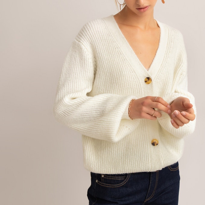 - Gilet col V boutonné – La Redoute