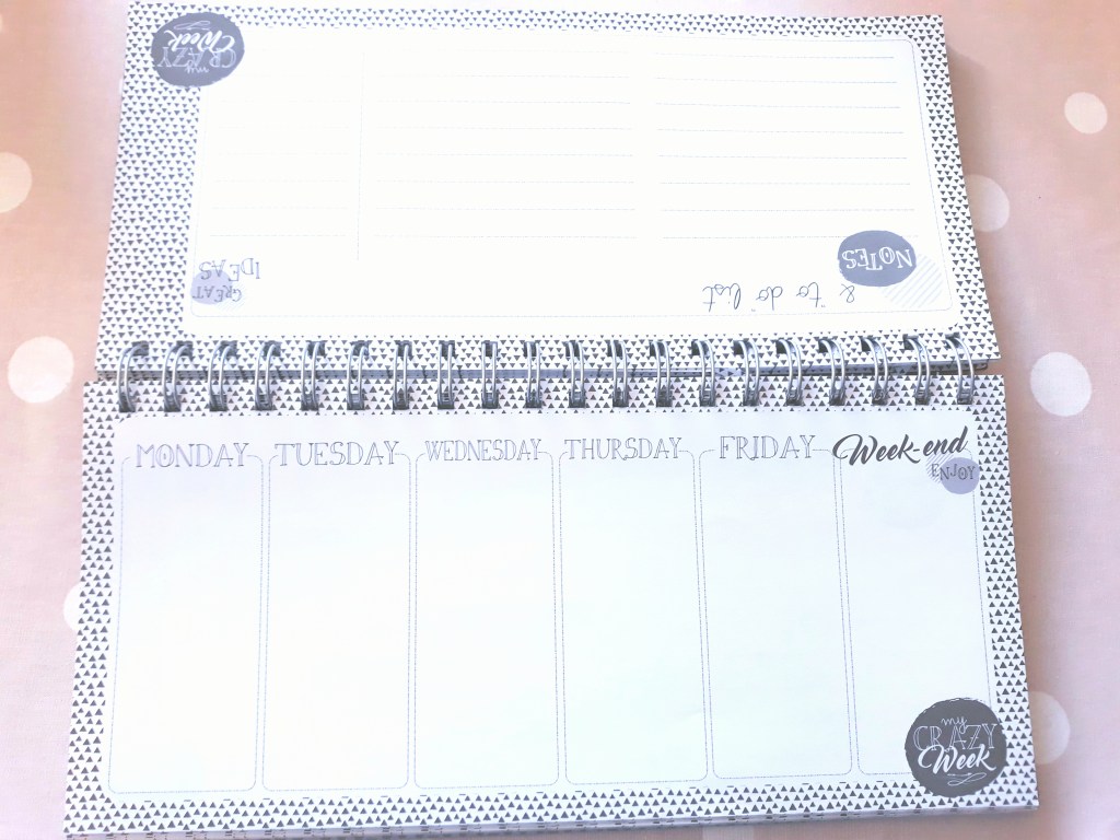 Ce joli semainier me permet d’organiser facilement ma semaine, d’avoir une vue d’ensemble de ce que je dois / souhaite effectuer durant les prochains jours, tout en pouvant ajouter des éléments au fur et à mesure si je le souhaite. J’aime beaucoup m’en servir, je le trouve très pratique.