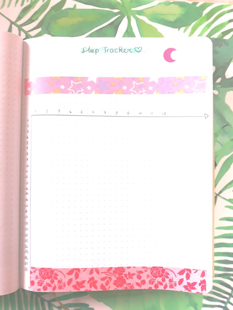 J’ai décidé de réaliser cette page dans les tons rosés. Je vais noter, pour chaque nuit, le nombre d’heures de sommeil que j’ai pu réaliser.