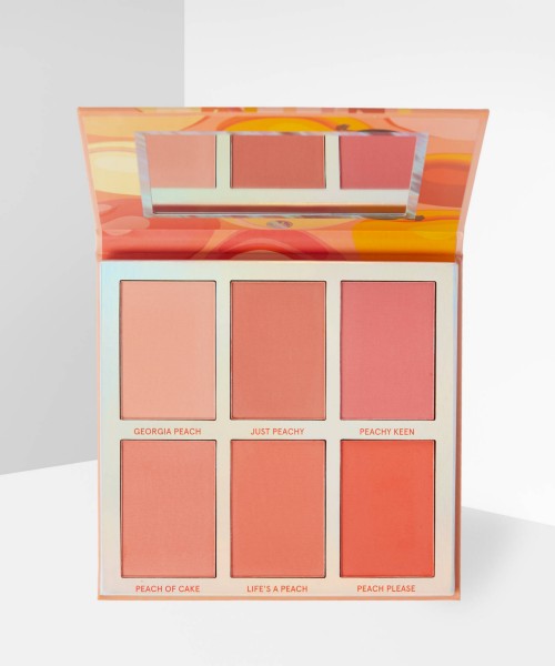 « Une palette blush de six teintes. Dotée de teintes pêche et corail soyeuses parfaites pour toutes les carnations, cette palette réunit des teintes mates et scintillantes soyeuses pour vous aider à maintenir vos looks frais et hydratés. Dotées d’une formule douce, ces teintes glissent sur la peau en lui conférant un éclat hâlé impeccable. »