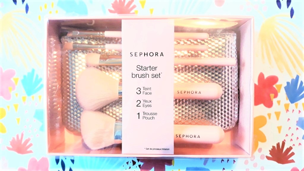 Je suis ravie d’avoir trouvé ce set de pinceaux en soldes, à moitié prix. Il contient tous les essentiels à avoir avec soi pour réaliser un maquillage : un pinceau poudre, un pinceau blush poudre, un pinceau anticerne (et correcteur), un pinceau ombre à paupières et un pinceau sourcils (qui peut aussi servir pour appliquer un eyeliner). Les pinceaux ont une jolie couleur rose poudré. Je trouve super pratique que le set contienne également une pochette pour ranger les pinceaux, cela nous permet de les transporter facilement.